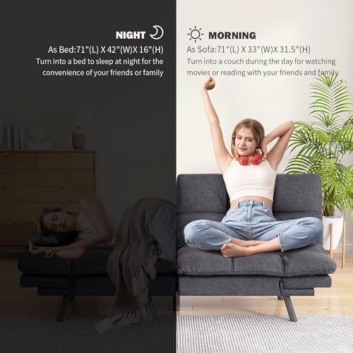 Convertible Futon Sofa Bed Couch,Linen Fabric Futon Sofa Couch,Memory Foam Futons,Small Splitback Modern Loveseat Sleeper Couch Bed for Living Room,Office,Apartment,Dark Grey