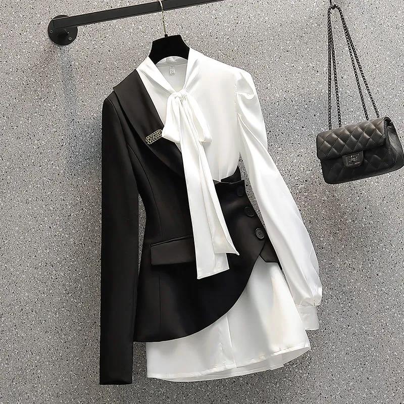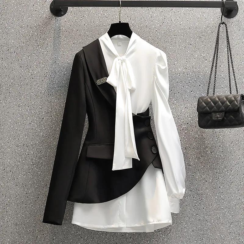 design Spring Autumn Women's Suits jacket Elegant Blazer Dress White Vestidos Black Coat Two-Piece Suit Female