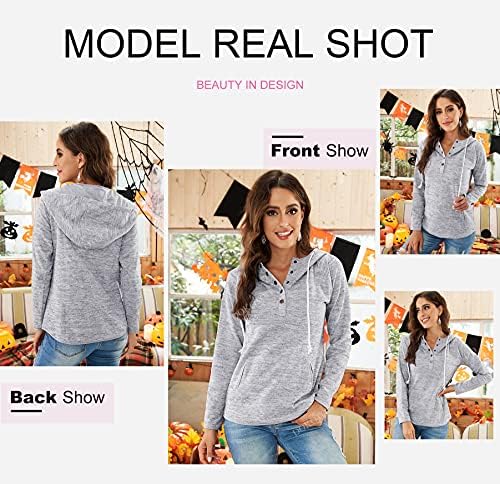 Dokotoo Womens 2023 Fashion Fall Button Collar Drawstring Stitching Sweatshirts Hoodies Pullover