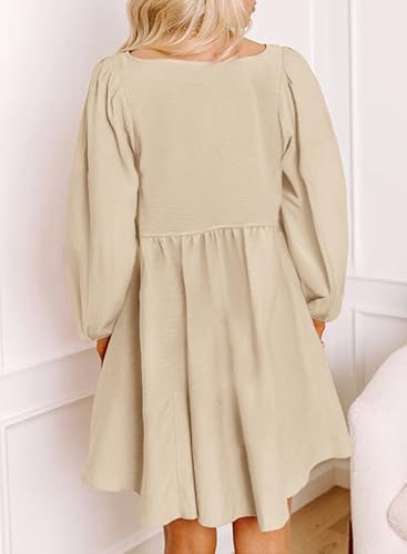 Dokotoo Womens 2024 Casual Dress Smocked Crewneck Button Up Long Sleeve Empire Waist A-Line Mini Dress