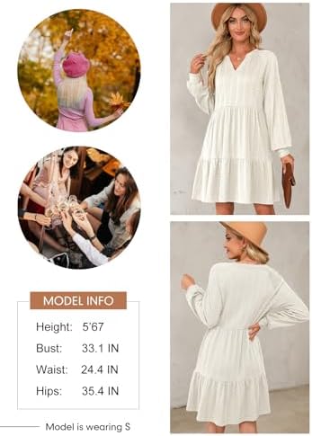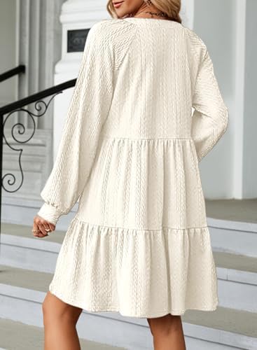 Dokotoo Womens Dresses Textured V Neck Long Sleeve Babydoll Dress Fall Outfits