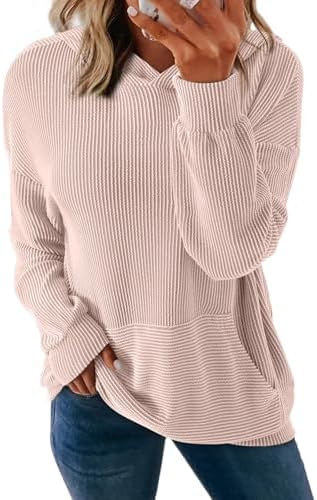 Dokotoo Women's Pullover Hoodies Sweatshirts Casual Loose Long Sleeve Ribbed Knit Shirts
