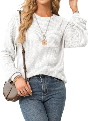 Dokotoo Womens Tops 2024 Long Sleeve Waffle Tops