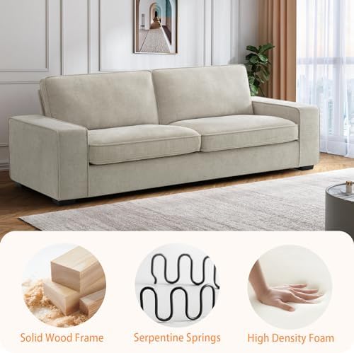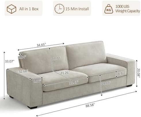 Love the beige color. Excellent stitching and heavy duty zippers. I appreciate the wooden legs simply as a quality statement as well as the fabric. Fabric stretches well for pulling main slip cover tight to attach to Velcro. No tools are needed. I did feel( for me ) that the seating depth could have been slightly deeper, so I pulled my bottom cushions out 2.5” to create a more loungy position. Very comfy now !! Great price for the quality.