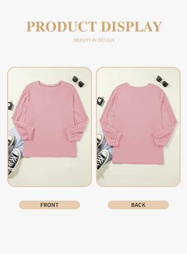 • Feature: Plus size tops with crew neck, lace hollow out long sleeve, solid pattern, waffle knit, casual loose fit t shirts.