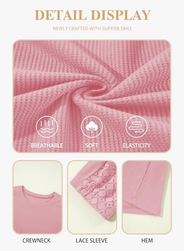 Womens Plus Size Tops Lace Long Sleeve Waffle T Shirts Casual Crewneck Tunic Top