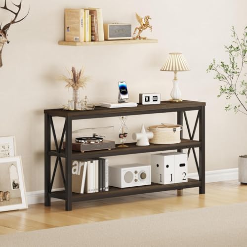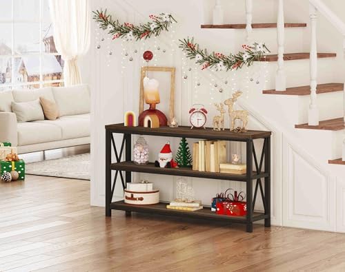 We use walnut brown finish as the main color of this sofa table, which can perfectly match your room and reflect the rustic style. Industrial minimalist style are perfect for any room. The spacious rustic tabletop and long shelves provide a perfect place to display and store your favorite accessories, photos, and collectibles. It can also use as TV console and long horizontal bookshelf.