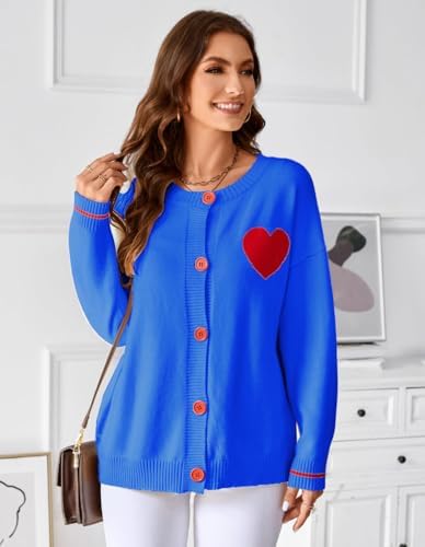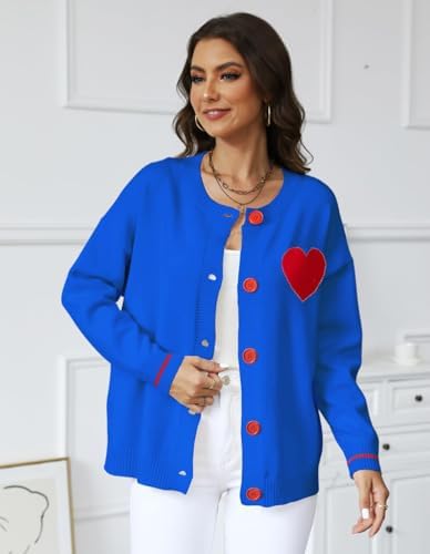 Women's Kawaii Heart Cardigan Long Sleeve Round Neck Cute Heart Sweater