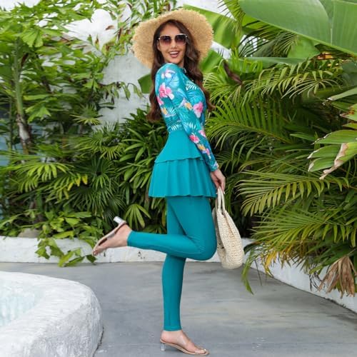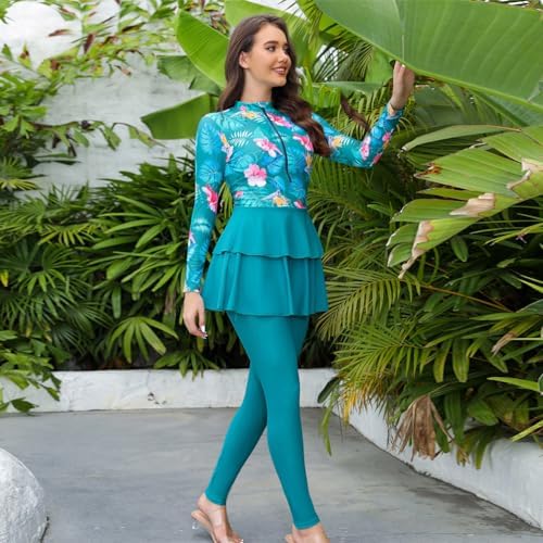 Modest Swimwear for Women, Burkinis for Muslim Women Ladies, Three Piece Islamic Full Body Swimming Shirts Tops Pants Hijab 3PCS Long Sleeve Rash Guard Set