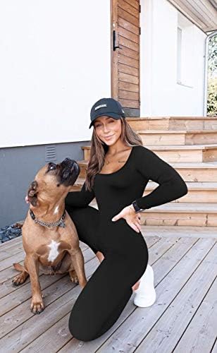 GOBLES Women's Sexy Long Sleeve High Waist Zipper Back Bodycon Jumpsuit Rompers