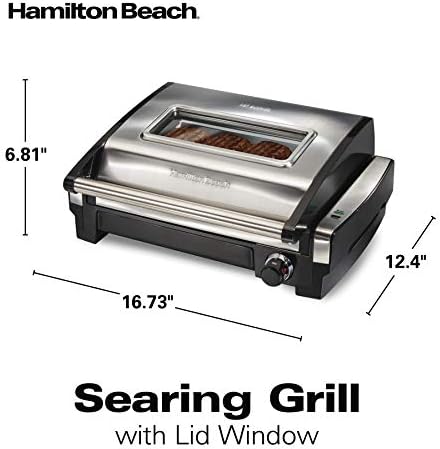Viewing Window: The viewing window allows you to monitor your food as it cooks without having to open the grill lid, which helps maintain consistent cooking temperatures and prevents heat loss.Definitely needs to be wiped down after every use but works well to keep an eye on your dinner while it cooks.Removable Nonstick Plate: The nonstick plate is not only convenient for easy cleaning but also ensures that your food won't stick during the grilling process. Plus, the fact that it's removable makes cleanup less of a pain in the neck.Searing Capability: The searing feature is a standout, allowing you to achieve those coveted grill marks and lock in flavor.Just make sure you don't flip your food too early.Indoor Convenience: With this grill, you can enjoy the experience of outdoor grilling regardless of the weather or living situation. It's perfect for apartments, condos, or homes without outdoor space.Size and Capacity: While it's not as large as an outdoor grill, the Hamilton Beach Electric Indoor Searing Grill offers ample space for grilling multiple servings at once, making it suitable for small gatherings or family meals.Overall, if you're looking for a convenient indoor grill that delivers on flavor and ease of use, the Hamilton Beach Electric Indoor Searing Grill with a viewing window and removable nonstick plate is definitely worth considering.