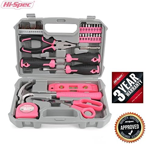 Hi-Spec 42pc Pink Household DIY Tool Set for Women. Home, Office and College Dorm Small Tool Kit of Starter Basic Ladies Tools