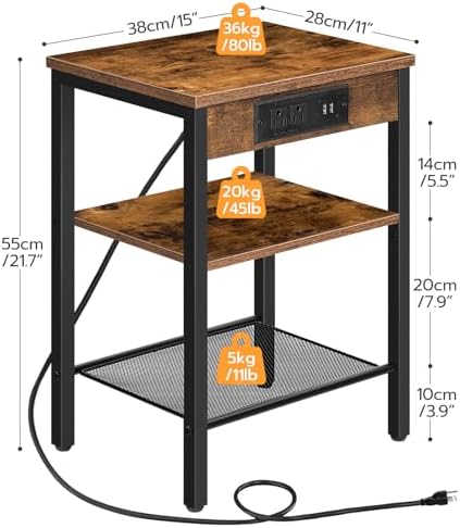 The HOOBRO End Table with Charging Station is a brilliant fusion of modern convenience and timeless design. This smart end table has not only elevated the functionality of my living space but has also become an integral part of my daily routine.First and foremost, the built-in charging station with USB ports is an absolute game-changer. The ability to charge my devices directly from the end table eliminates the need for extra adapters and cords cluttering my space. The USB ports are conveniently placed, allowing me to keep my smartphone, tablet, or other gadgets powered up and within arm's reach.The design of the end table is both sleek and practical. The classic color and clean lines make it a versatile addition to any room, seamlessly blending with various decor styles. The compact size is perfect for smaller spaces, and the smooth finish adds a touch of sophistication.Assembly was a breeze, with easy-to-follow instructions and all necessary hardware included. The sturdy construction of the end table became evident as I assembled it, providing confidence in its durability.The spacious tabletop and lower shelf offer ample storage for everyday items, such as books, a lamp, or decorative accents. The added convenience of having a dedicated space for essentials enhances the overall organization and tidiness of my living space.The durability of the HOOBRO End Table is impressive. The high-quality materials used in its construction ensure that it stands up well to daily use, providing both reliability and longevity.Whether you're a tech-savvy individual or someone looking to streamline their living space, the HOOBRO End Table with Charging Station is a practical and stylish solution. Its combination of smart features, elegant design, and affordable price point make it a five-star addition to any home. Highly recommended!