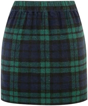 IDEALSANXUN Womens Wool Plaid Mini Skirt Fall Winter High Elastic Waist Short Pencil Skirt
