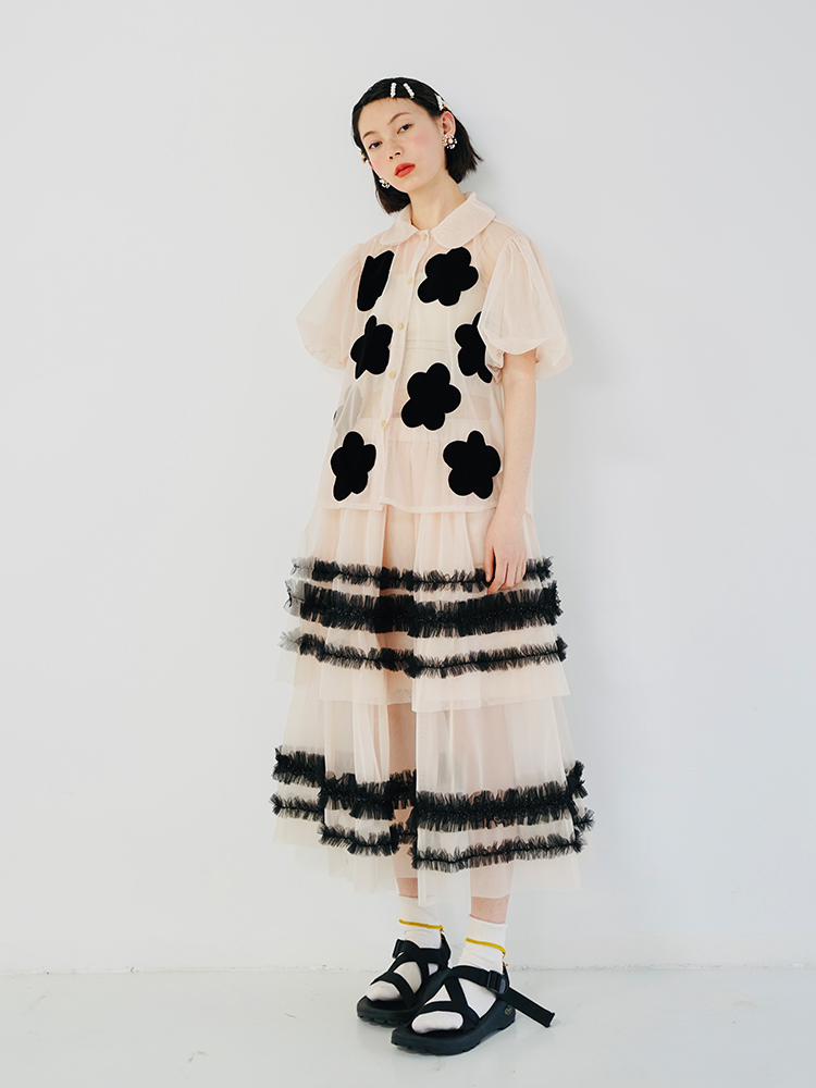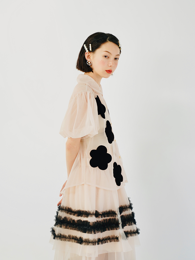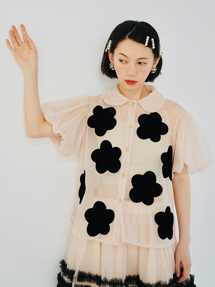 imakokoni Spring/Summer Taiwan Satin Puff Sleeve Doll Collar Short Sleeve Sunscreen Single Breasted Shirt 223603