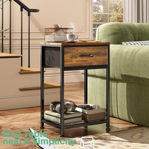 Featuring sturdy steel frames, wooden surface and lightweight fabric drawer, this end table combines strength with a portable design, making it both durable and easy to move around.