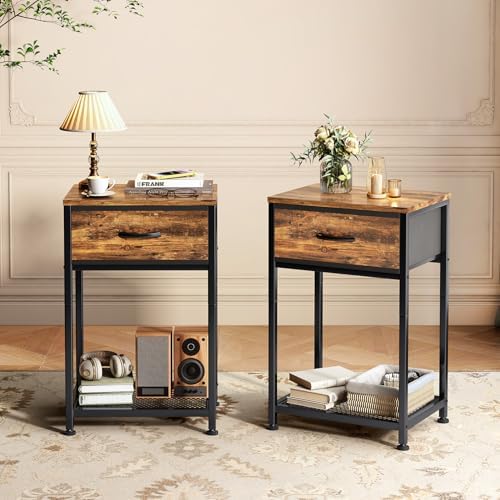 Designed in a rustic style, end tables with drawers complements any room and works perfectly as a side table set of 2 in the living room, providing convenient access to everything