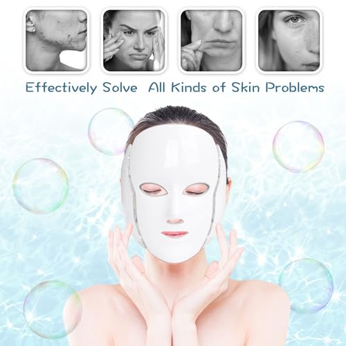 LED FACIAL LIGHT THERAPY MASK-Led Face Mask Light Therapy, 7 Led Light Therapy Facial Skin Care Mask - Blue & Red Light for Acne Photon Mask - Skin Care Mask for Face and Neck.White