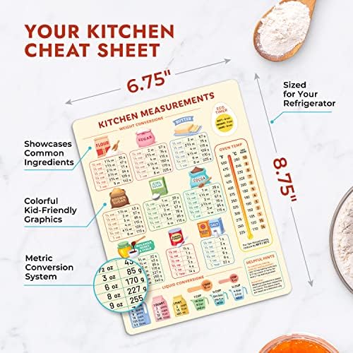 Don’t resort to rough estimates and risk a flattened souffle or a sauce with unbalanced flavors. Get the answer to your kitchen needs with one quick look at your refrigerator door.