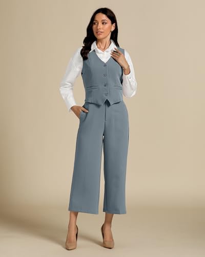 - - 2 piece set includes a pair of wide leg pants, and V-neck and sleeveless vest