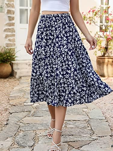 Lyrur Women's Floral Midi Skirt with Pockets High Elastic Waist Flowy Ruffle Casual Summer Boho Aline Skirts