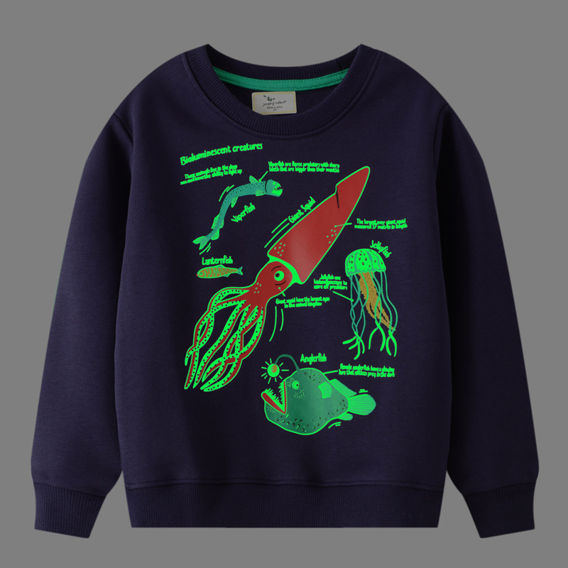 magical shark painting cotton cool Fluorescent hoodies marine organism sharks pattern noctilucent sweatshirt for girl gifts
