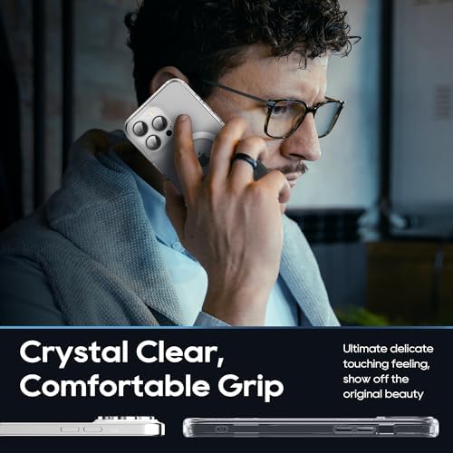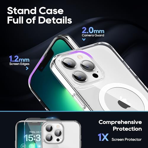 Magnetic Case for iPhone 13 Pro Case 6.1-Inch, Slim Kickstand with Screen Protector Compatible with Magsafe Shockproof Crystal Clear Cases Phone Case Cover, Clear