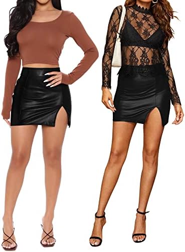 MANGOPOP Womens High Waist Bodycon Mini Short Faux Leather Skirt with Slit