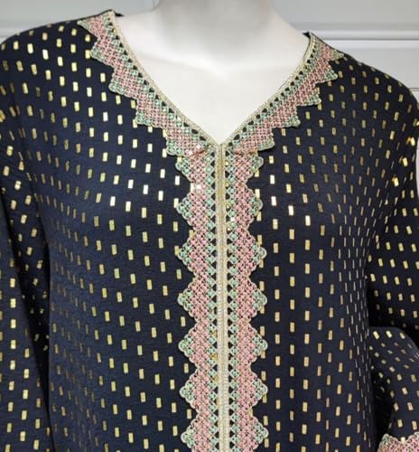 Muslim Abaya Dresses for Women V Neck Kaftan Islamic Prayer Robe Embroidered Bronzing Dress Holiday Evening Dress