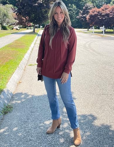 Odosalii Womens Long Sleeve Tops Crewneck Sweatshirts Pleated Front Sweaters Plain Shirts Trendy Side Split Fall Outfits