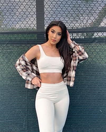 OQQ Women's 2 Piece Yoga Leggings Ribbed Seamless Workout High Waist Athletic Pants