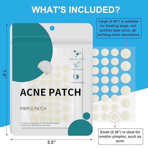 Pimple Patches for Face, 288 hydrocolloid patches, effectively cover and repair acne and blemishes, promoting skin regeneration. Ideal for makeup, skin care.
