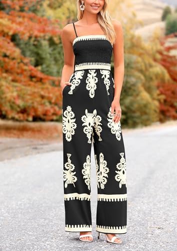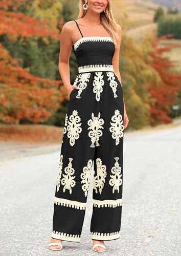 PRETTYGARDEN Women’s Boho Jumpsuits Spaghetti Strap Long Pants Rompers
