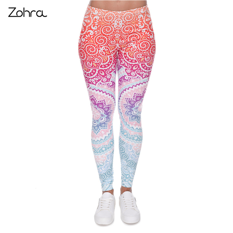 s Women Legging Aztec Round Ombre Printing leggins Slim High Waist Leggings Woman Pants /40