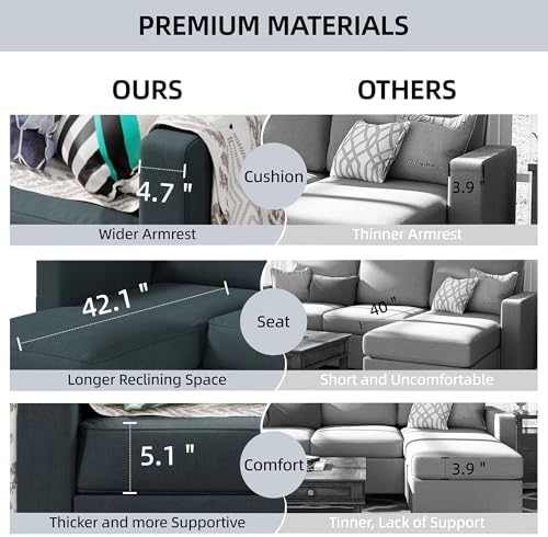 Shintenchi is devoted to delivery a tender and fancy living environment to every customer. We have our own factory, reduce middlemen, can provide you with the most cost-effective products in the same kind of products, to ensure your comfortable life experience. And our indoor sofas are ergonomically designed to fit the curve of the back and relieve the pressure on the back, suitable for a variety of space and style, to meet your needs. You can enjoy a coffee in the morning sun, a tea after lunch and a wine in the night. Our sectional sofa is not large, so it can be a solution for buyers who have small space and need a beautiful sofa! Specifications Color: Dark grey, Light grey, Chocolate, Black, Light Brown,Dark BrownFrame Material: MetalSeat Height:16.9 Inches Tips Instructions before buy 1.Please confirm whether the size of our products meets your requirements before you buy it2.Please note that there is a little color difference between the object and your monitor