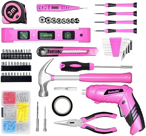 SOLUDE Pink Tool Set,130 Piece Home Tool Kit for Women with 3.6V Cordless Rechargeable Screwdriver,Basic Toolkits for New House,Apartment,Dorm & DIY Projects