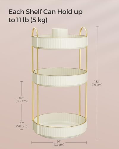 SONGMICS Makeup Organizer, 3-Tier Round Rotating Skincare Organizer Countertop, Customizable, Toiletries Vanity Organizer, Lazy Susan, Christmas Gift, Cloud White UJKA011W01