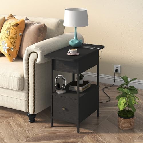SOOWERY end table offers you the convenience of 2 USB ports & 2 power outlets, it's here, within your arms’ reach.