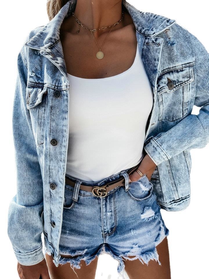 summer leisure washing hole straight pants middle waist women's jeans shorts jeans vintage