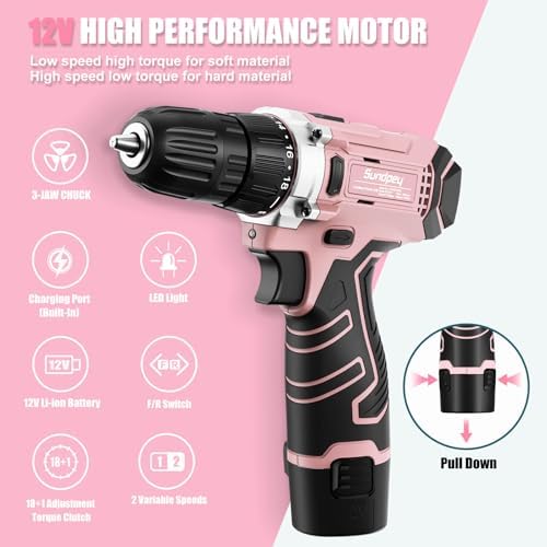 Sundpey Pink TOOL KIT with Power Drill