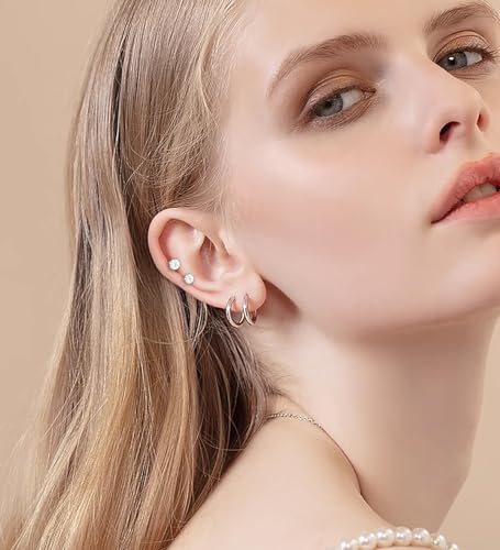 11 Pairs Surgical Steel Flat Back Studs and Sterling Silver Huggie Hoops