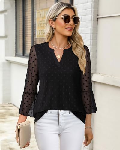 Timeson Women's 3/4 Sleeve Tops and Blouses V Neck Business Casual Shirts