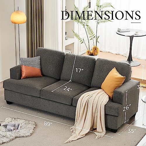 VanAcc 89 Inch Sofa, 3 Seater Sofa Couch with Extra Deep Seats, Modern Sofa Couch- Comfy Sofa Couch for Living Room Apartment Lounge, Grey Chenille