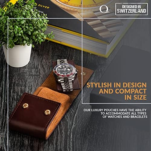 Each luxurious single watch pouch measures 110mm (4.33 Inch) x 70mm (2.76 Inch) x 40mm (1.57 Inch) and is handcrafted by skilled artisans from genuine, full-grain Nappa leather. This type of leather is stylish, soft, and smooth as well as very durable. It's very easy to clean and will not absorb water and other liquids.