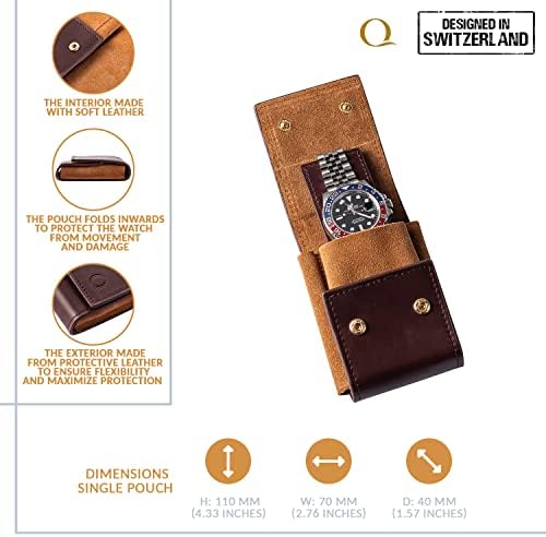 You'll appreciate the interior of the Qwatch pouch is made with soft leather and folds inwards to protect the watch from movement and damage. The exterior of the watch pouch is made from protective leather to ensure flexibility and maximise protection.