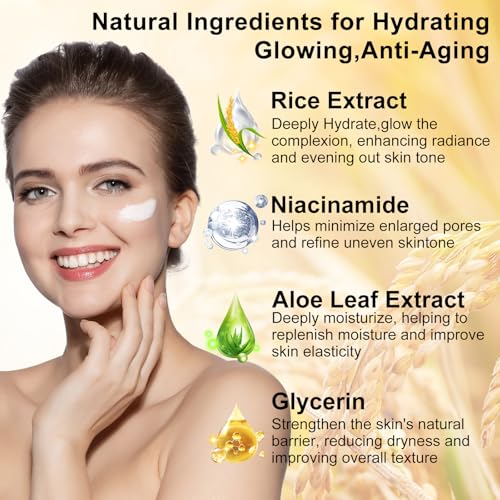 • Our Rice Water Skin Care Products combine the powerful benefits of Rice Extract,Niacinamide,Hyaluronic Acid and Vitamin E to deeply hydrate,nourish and repair the skin. This expertly formulated blend helps combat dryness and signs of aging,promoting a glowing,rejuvenated complexion. It works to improve skin texture,boost moisture retention,and enhance overall radiance,leaving your skin looking healthy and revitalized.