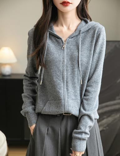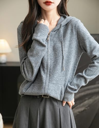 Women's 100% Merino Wool Zip Up Hoodies 2024 Fall Winter Warm Long Sleeve Knit Sweatshirt Cardigan with Pocket