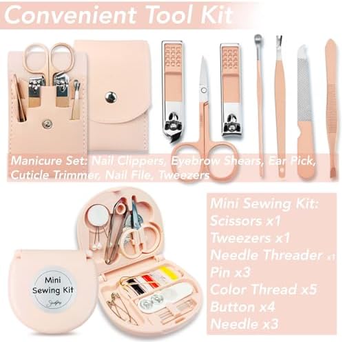 Retractable Hair Brush, Hair Ties and Sewing Kit, Manicure Set and Personal Care Items Number of Pieces