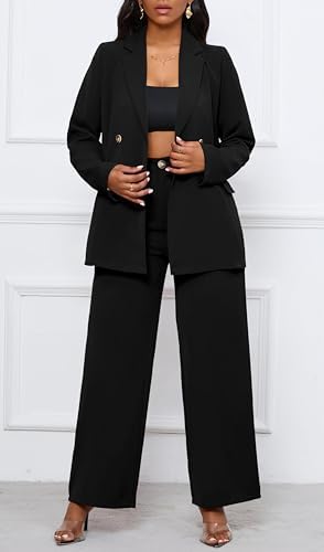 Women's Trendy 2024 Two Piece Outfits Blazer Jacket and Wide Leg Pants With Pockets Fall And Winter
