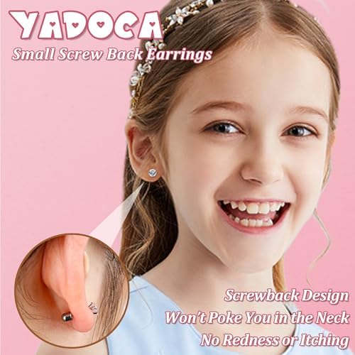 YADOCA 10 Pairs Hypoallergenic Screw Back Earrings For Girls Women Surgical Steel Small Huggie Hoop Earrings Cute CZ Butterfly Star Dangle Hoop Earrings 20G Screwback Stud Earrings Set For Sensitive E